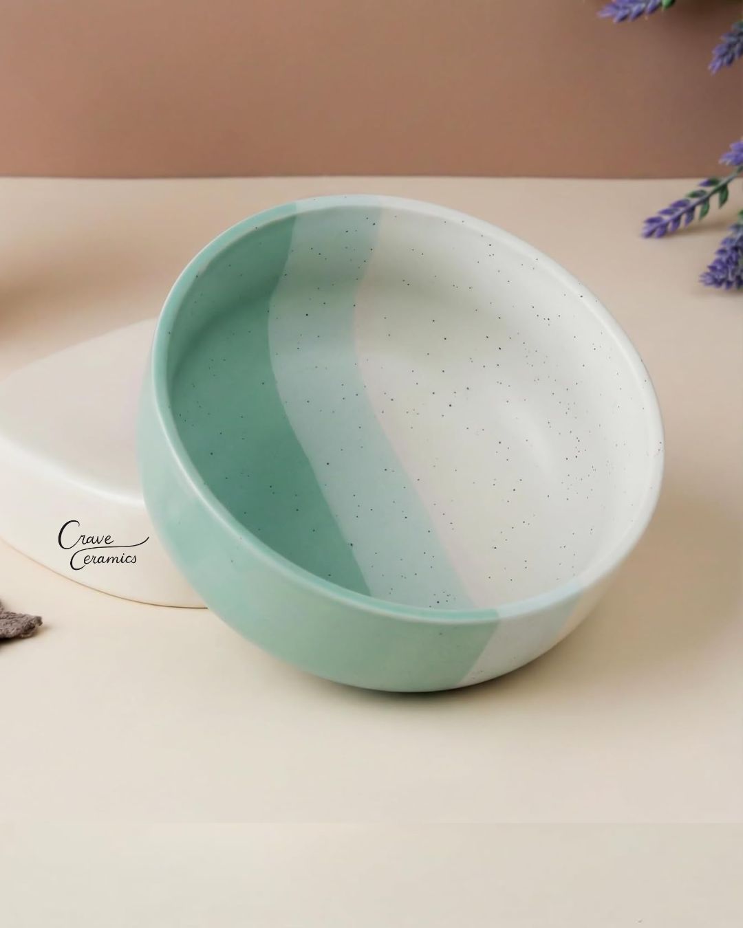 - •Modern Two-Tone Speckled Design: Featuring a soothing mint green and white speckled finish, this minimalist bowl adds a contemporary touch to your dining table, kitchen, or open shelving décor.