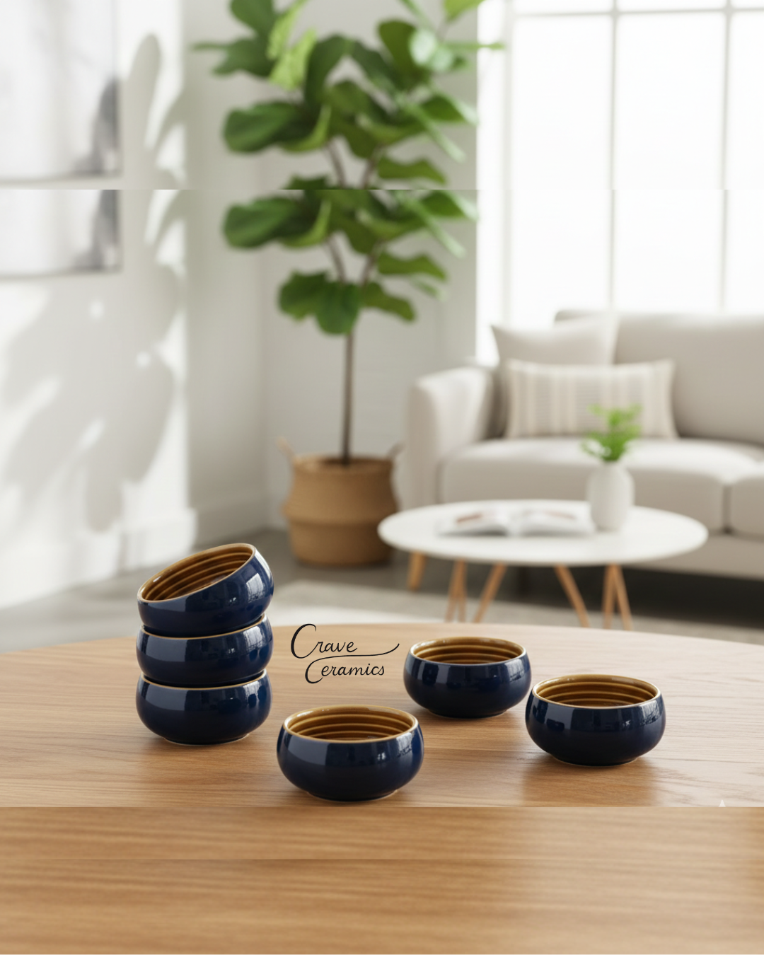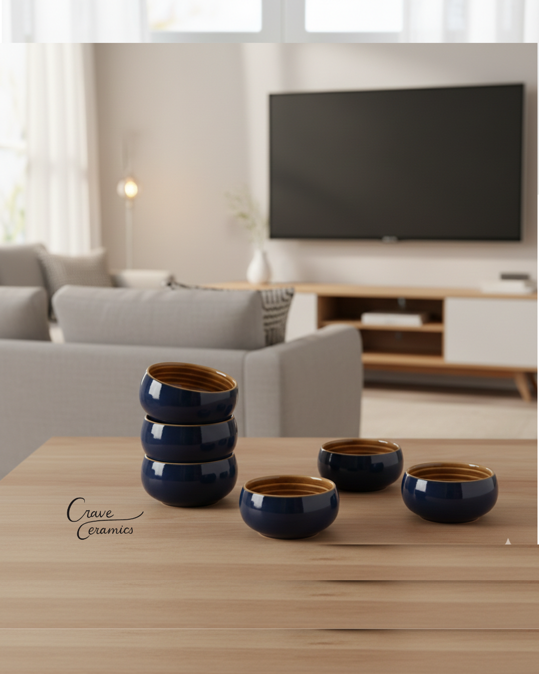Elevate your dining experience with the Crave Ceramics Premium Ceramic Bowl Set of 4, featuring a glossy navy blue exterior and warm brown glazed interior for a modern, elegant touch. Crafted from dur...